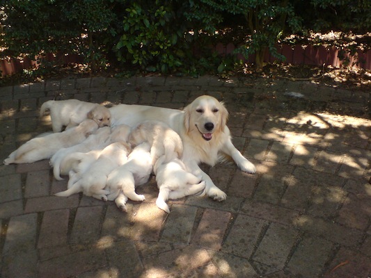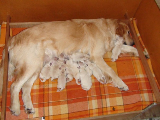 This is Rosie, one of Sheba's daughters with her first litter. Rosie joined her mum Sheba in Doggy Heaven in 1916.